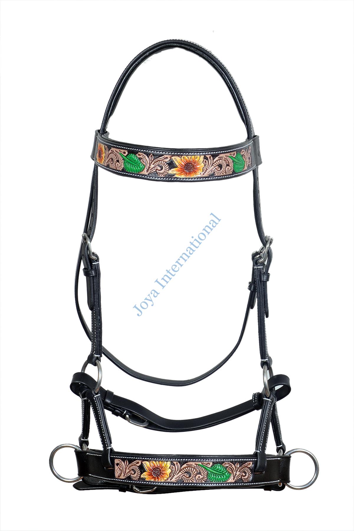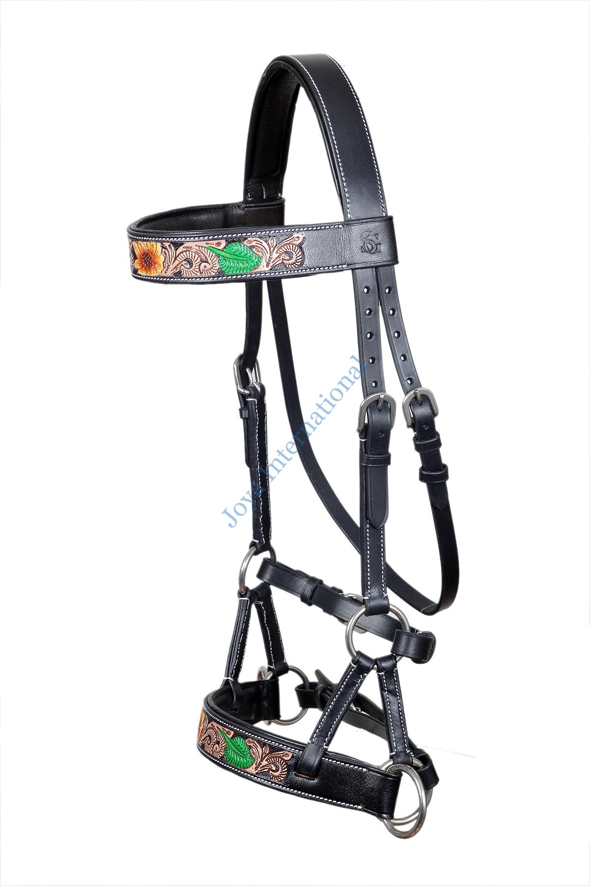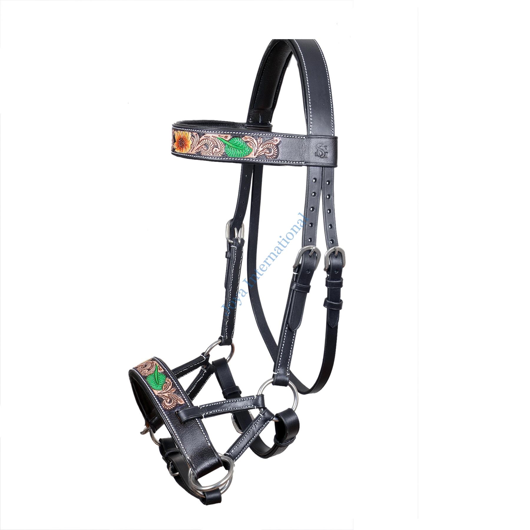 Handmade Antique Floral Tooled Bitless Sidepull Bridle