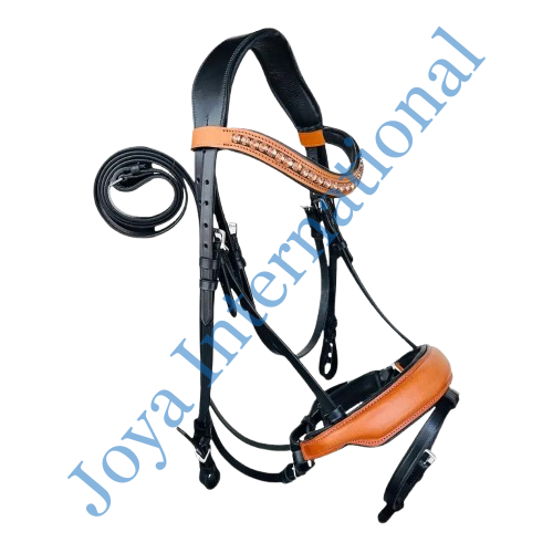 Each bridle comes complete with matching leather reins, ensuring durability and comfort during riding. Expertly handcrafted in India, this bridle is perfect for equestrian enthusiasts who value quality, beauty, and functionality.