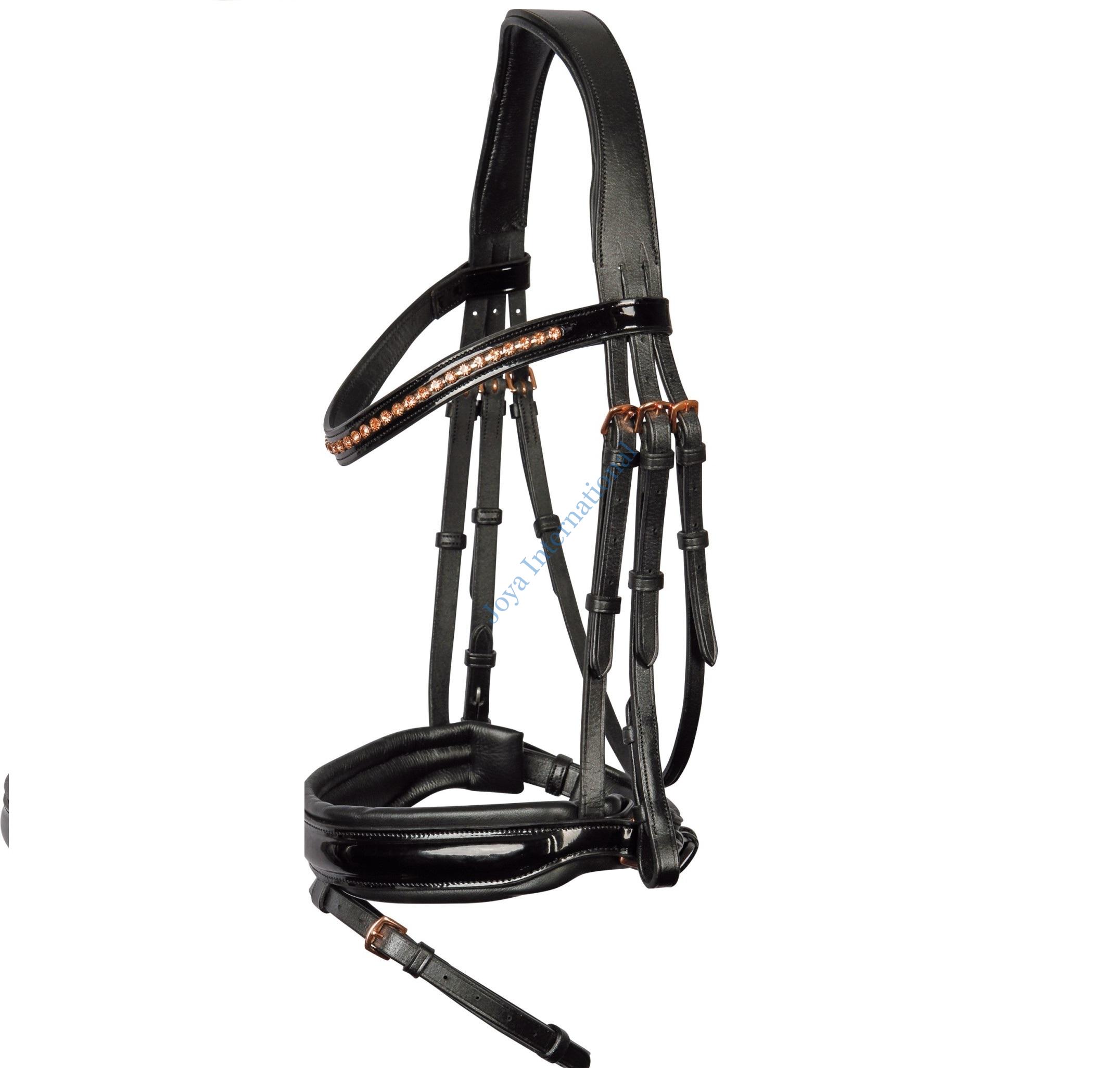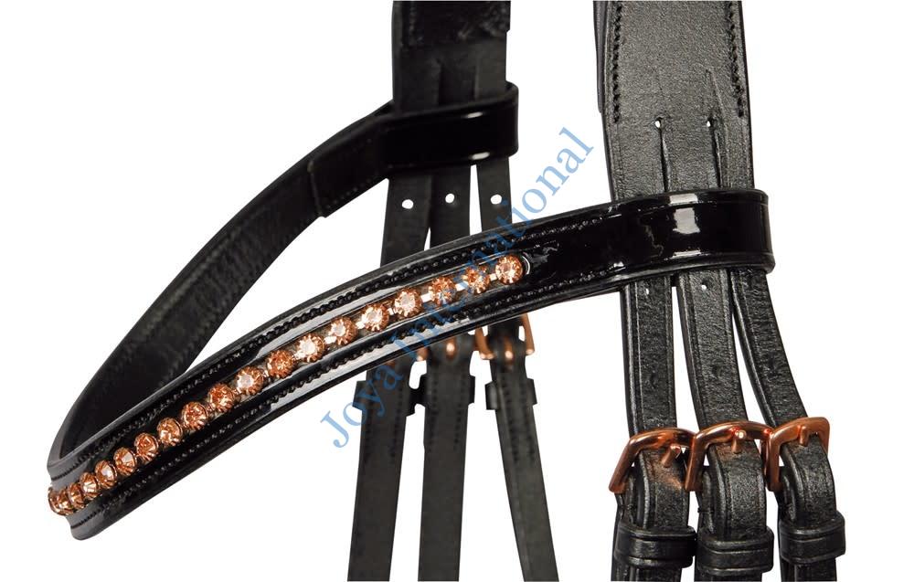 Horse Rose Gold Bridle Black Patent Leather with Rose gold Crystal Browband