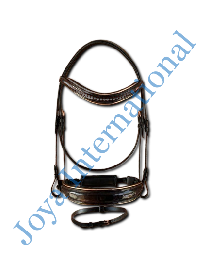 Soft padded noseband with gold piping for comfort